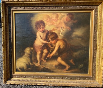 | Lot #: 78 Attributed to Giuseppe Mazzolini (Italian, 1806-1876) "The Infant Christ and Saint John the Baptist with a Shell" after Bartolome Esteban Murillo |