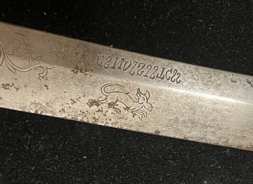 signed and engraved blade, shagreen scabbard . |