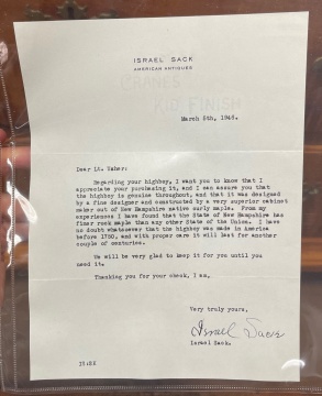 Provenance Israel Sack, New York, NY. Donald Usher, Scarsdale, NY, purchased 1946. |