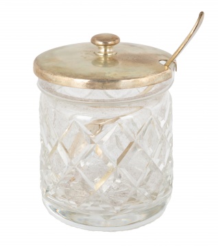 | Lot #: 13 Tiffany & Co. Crystal Mustard Pot and 12 Demitasse Spoons |