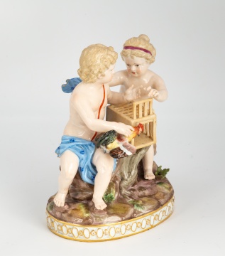| Lot #: 36 Meissen Figurine with Children and Rooster |