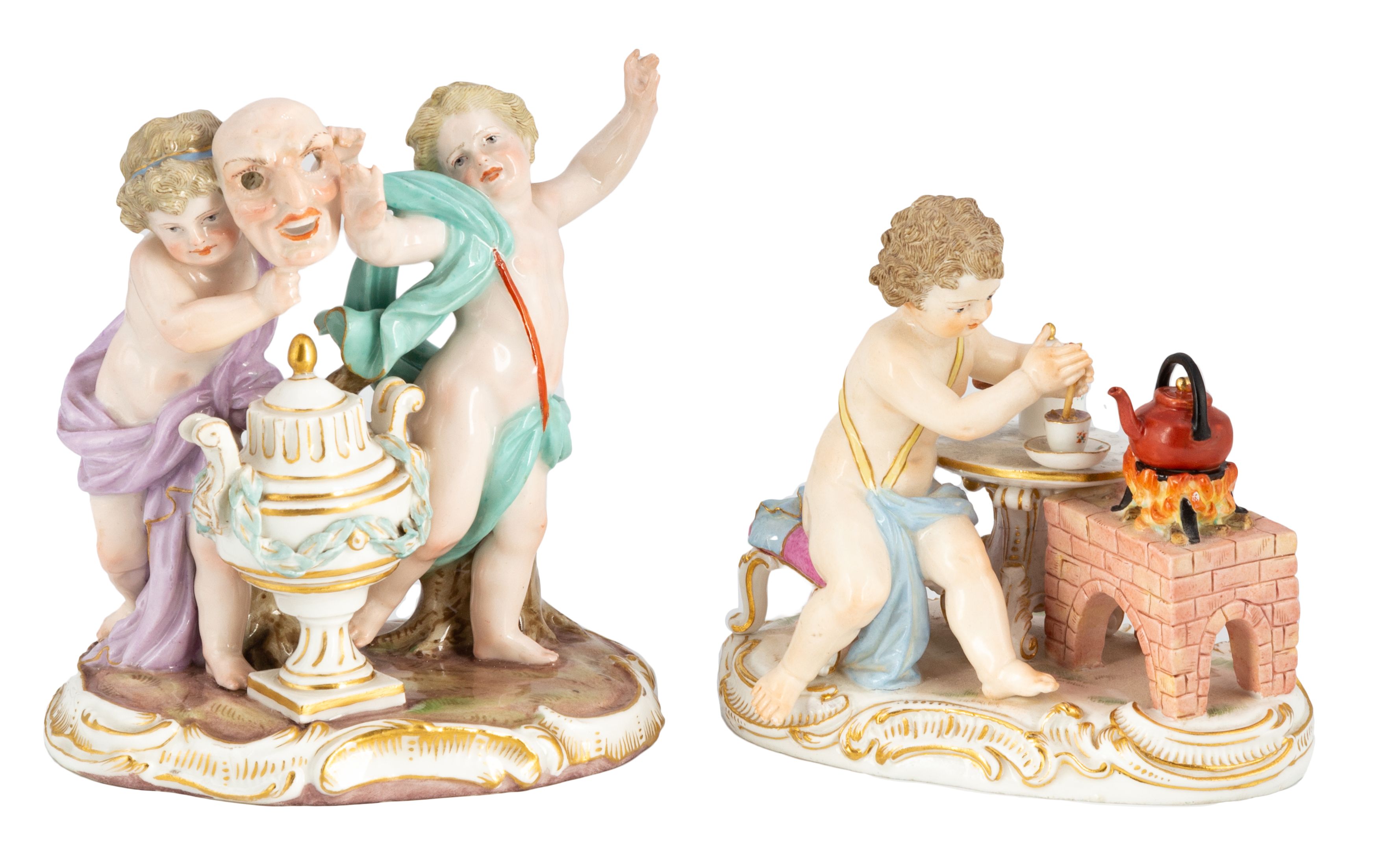 | Lot #: 41 Two Meissen Figurines of Putti Groups |