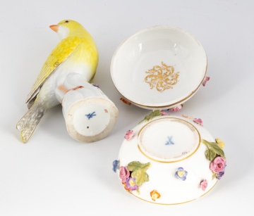 | Lot #: 43 Meissen Figurine of Yellow Canary & A Floral Dresser Box |