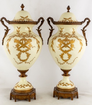 | Lot #: 57 Pair of Decorated Sèvres Covered Urns |