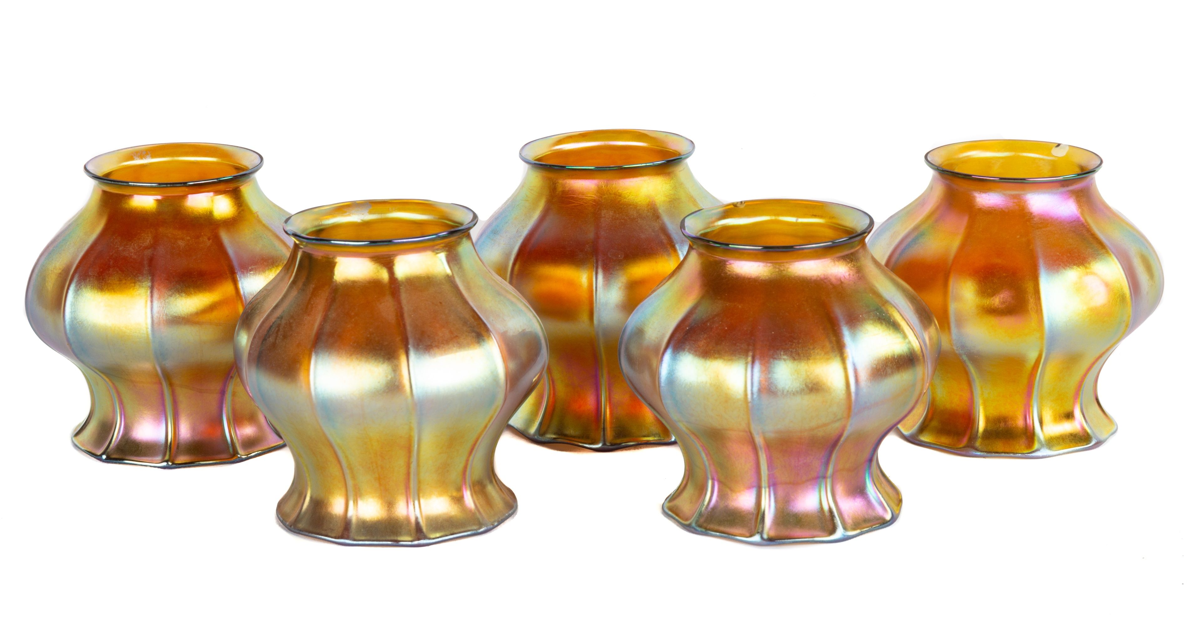 | Lot #: 88 (5) Steuben Gold Aurene Bell Shaped Shades |