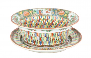 | Lot #: 339 Chinese Rose Medallion Reticulated Bowl & Under Tray |