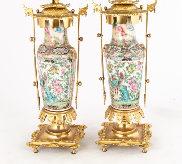 | Lot #: 340 Chinese Rose Medallion Gilt Bronze Mounted Candleholders |