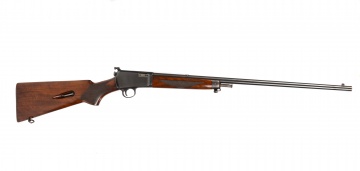 Artwork: Overall 32 x 25 in. Gun: Winchester rifle, walnut checkered stock and original bluing. Winchester Model 63-22 Long. Rifled - superspeed and super - x, overall length 39 1/4 in. Signed Winchester book, 2 binders with photographs, paper goods and 5 pieces of type. Jim Levack was a veteran of the First World War that, after winning numerous shooting championships, became a member of the U.S. rifle team in 1935 and eventually an exhibition shooter for Winchester. During the period of the 1930s when exhibition shooting was wildly popular, Levack did many of the typical tricks such as shooting the center of a washer with a rifle or throwing a handful of objects in the air and hitting them all before they hit the ground. He created works of art shooting at bullets at targets and also played "golf" with his rifle. |