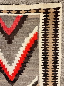 | Lot #: 670 Brown, Tan, Grey and Red Navajo Weaving |