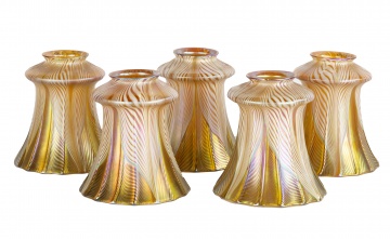 | Lot #: 82 (5) Quezal Pulled Feather Art Glass Shades |