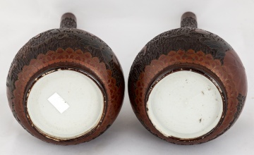 | Lot #: 355A Pair of Japanese Cloisonné Lacquer on Porcelain Vases |