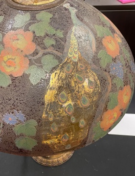 Condition Some loss to gold leaf of peacock feathers. Some loss to enameled base. |