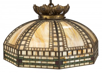 | Early 20th century. Stamped Handel. Has hanger and ceiling cap. |