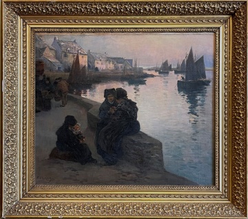 | Lot #: 251 Fernand Marie-Eugene Legout-Gerard (French, 1856-1924) Harbor Scene with Women and Children |
