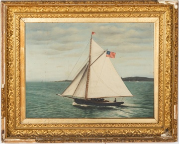 | Lot #: 252 19th Century Sailing Vessel Painting with American Flag |