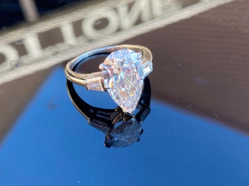 | Lot #: 11 3.45 CT Pear Shaped Diamond Ring with Platinum and Diamond Band |