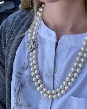 Double Strand Pearl Necklace with 14K Gold and Diamond Clasp