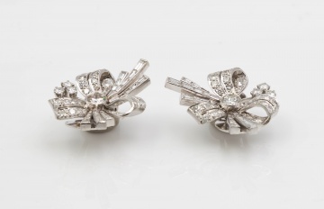 Pair of Platinum and Diamond Clip Back Earrings