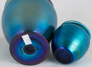 | Lot #: 197 (2) Steuben Blue Aurene Vases |