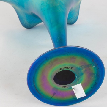 | Lot #: 198 Steuben Blue Aurene Vase with Ruffled Top |