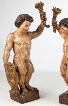| Lot #: 224 Early Carved and Polychrome Painted & Gilded Figures |