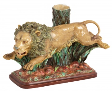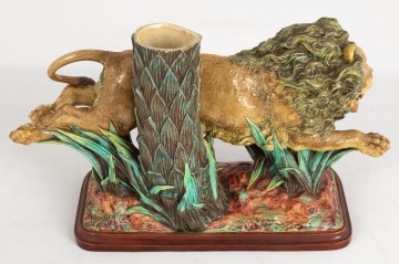 | Lot #: 41 Royal Worcester/Majolica, James Hadley Lion & Vase |