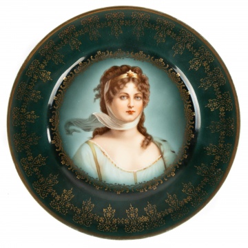 | Lot #: 47 Royal Vienna Hand Painted Porcelain Plate with Portrait of a Young Woman |