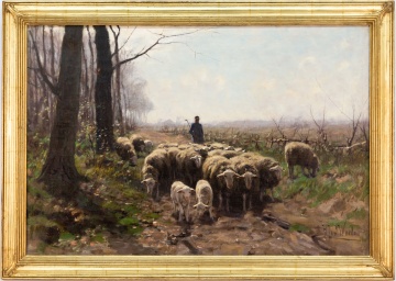 | Lot #: 161 Hermann Johannes van der Weele (Dutch, 1852-1930) A Shepherd Herding His Flock |