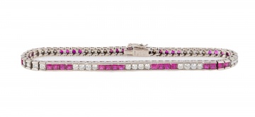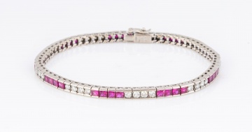 | Lot #: 242 Platinum, Diamond & Ruby Tennis Bracelet |