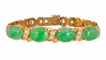 | Lot #: 249 18K Gold, Jadeite & Diamond Bracelet |
