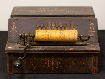 Stenciled and ebonized case. Comes with extra rolls. |