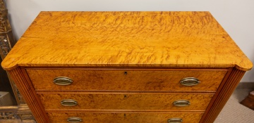 | Lot #: 418 Country Sheridan Curly Maple Chest of Drawers |