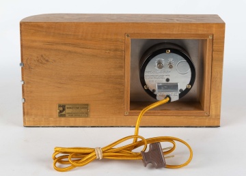 Burl wood veneer and chrome plated-steel. For World's Fair Clocks. |