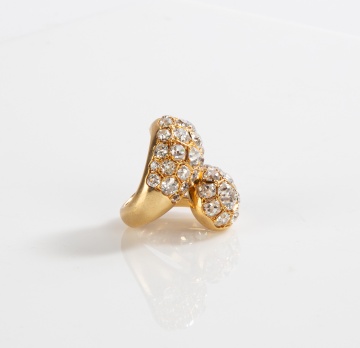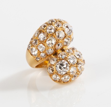 with eagle head and makers marks. 46 encrusted old mine cut diamonds, approximately 6 cts total. Two largest diamonds approximately 0.75 cts each, clarities approximately VS & SI. Total weight 16.8 g. |