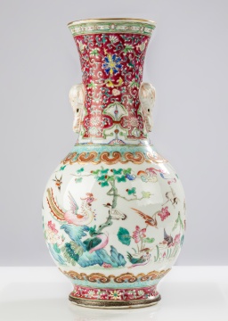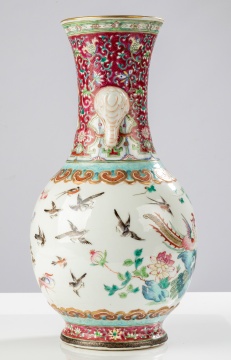 | Lot #: 44 Chinese Famille Rose Enameled Birds & Pheonix Vase |