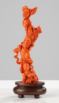 | Lot #: 49 Chinese Coral Immortals Carving |