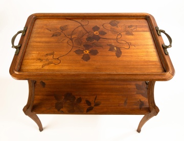 | Lot #: 135 Louis Majorelle (French, 1859-1926) Marquetry Inlaid Mahogany Two Tier Parlant Table |
