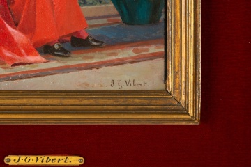 | Oil on panel. Signed J. G. Vibert (lower right). |