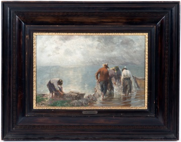 | Lot #: 156 Joseph Wopfner (Austrian, 1843-1927) Men Hauling Fishing Nets |