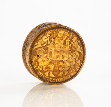 | Lot #: 174 Early Continental Carved and Engraved Horn Snuff Box |