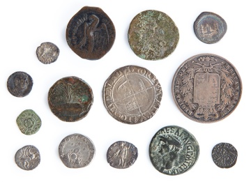 | Lot #: 174A (14) Continental Bronze and Silver Coins |