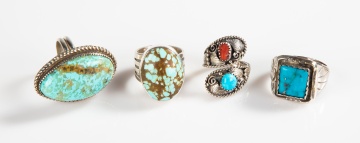 | Lot #: 115 (4) Sterling Silver & Turquoise Rings |