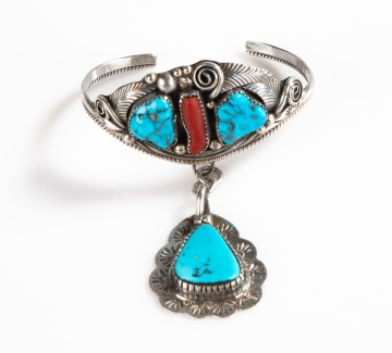 | Lot #: 119 Justin Morris Silver, Turquoise & Coral Cuff |
