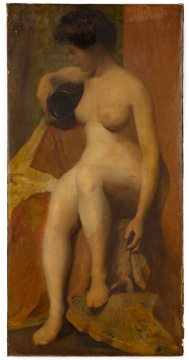 | Lot #: 164 19th Century Nude Portrait Painting of a Woman with Vase |