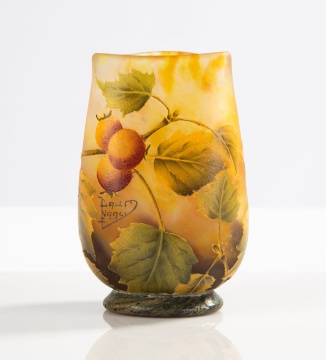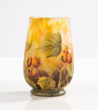 circa 1900. Acid etched and enameled foliage and berries. Signed 'Daum Nancy'. |