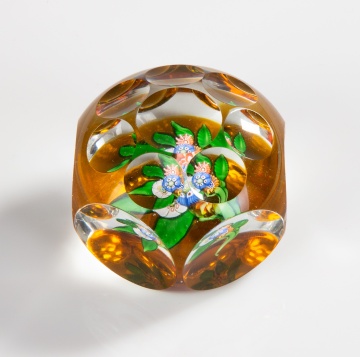 | Lot #: 204 Antique Saint Louis Bouquet and Torsade Faceted Paperweight |