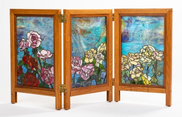 | Lot #: 208 Joseph Porcelli, Porcelli Studios, Leaded Glass 'Rose' Folding Screen |