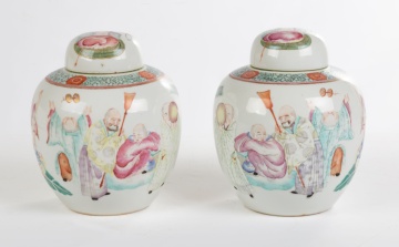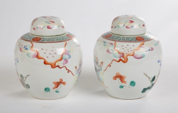 | Lot #: 216 Pair of Chinese Famille Rose Enameled Ginger Jars |