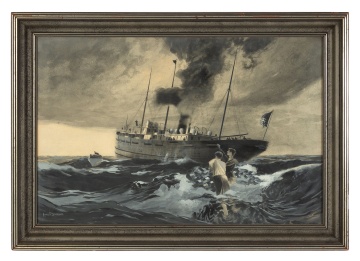 | Watercolor / gouache laid on canvas. Signed 'Howard F. Sprague' (lower left). |