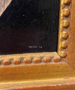 Oil on artist board. Signed and dated 'Marcile '50' (lower right). |